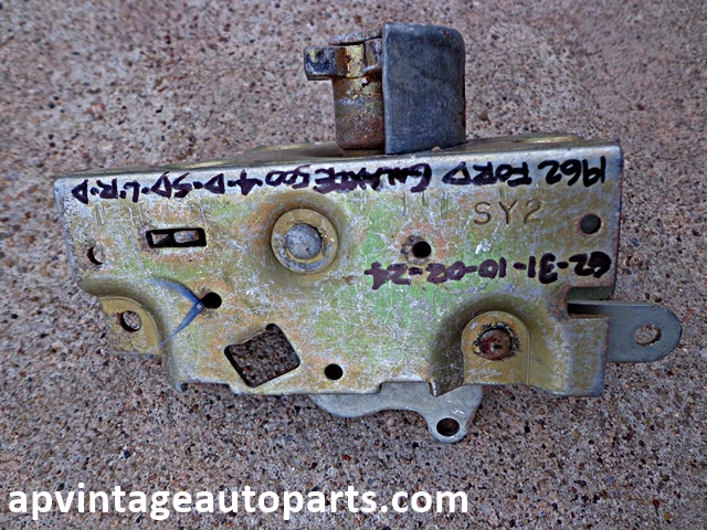 1962 Ford Galaxie rear LH door latch assembly. Free shipping lower 48 U.S. **INTERNATIONAL customers must contact us for accurate shipping cost prior to purchase. Follow our updates on Facebook  or Pinterest for the latest Galaxie restoration parts for sale.
