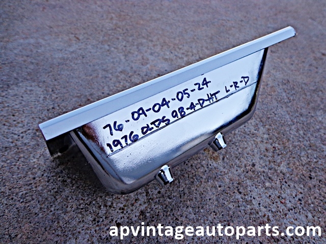 1976 Oldsmobile Delta 88 98 4 dr hardtop LH REAR DOOR handle interior chrome bezel trim OEM. Free shipping lower 48 U.S. **INTERNATIONAL customers must contact us for shipping cost prior to purchase. Follow our updates on Facebook for the latest classic 1976-1979 Oldsmobile parts for sale.