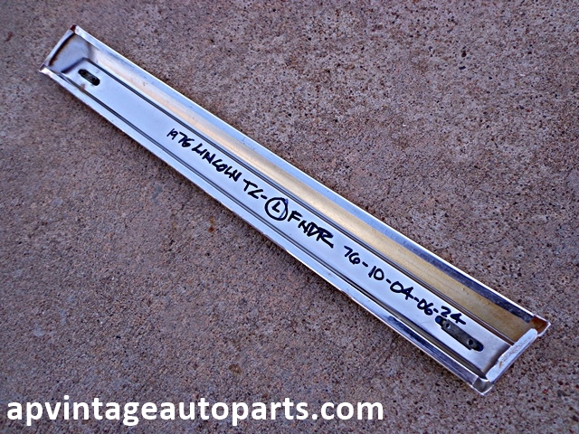 1976 Lincoln Continental Town Car Coupe LH driver fender molding. Free shipping lower 48 U.S. **INTERNATIONAL customers must contact us for accurate shipping cost prior to purchase. Follow our updates on Facebook or Pinterest for the latest classic Lincoln restoration parts for sale.